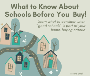 As agents, we can’t give opinions about schools or say which ones are “better.” That falls under fair housing rules.